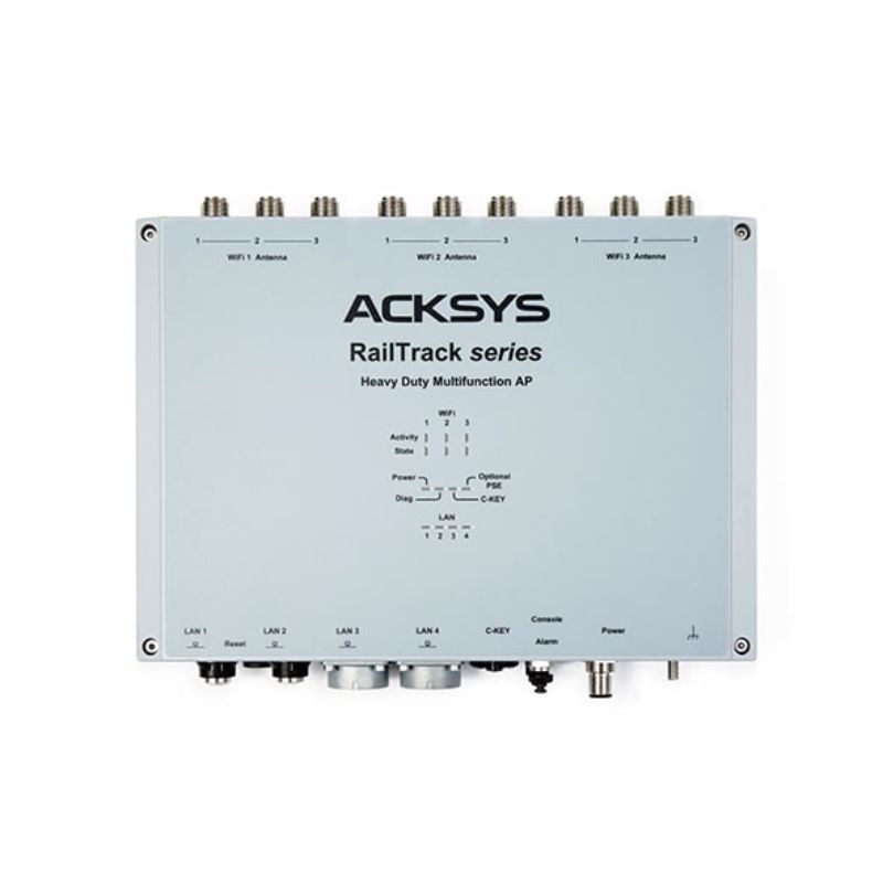 RailTrack (AP trackside) kết hợp với RailBox (WiFi onboard) tạo thành kiến trúc kết nối toàn diện cho truyền thông “train-to-trackside in motion” của ACKSYS. Giải pháp này cung cấp kết nối băng rộng tốc độ cao và ổn định giữa tàu và hạ tầng trackside, phù hợp cho hệ thống BBRS, giám sát video thời gian thực, WiFi cho hành khách cũng như các ứng dụng CBTC.