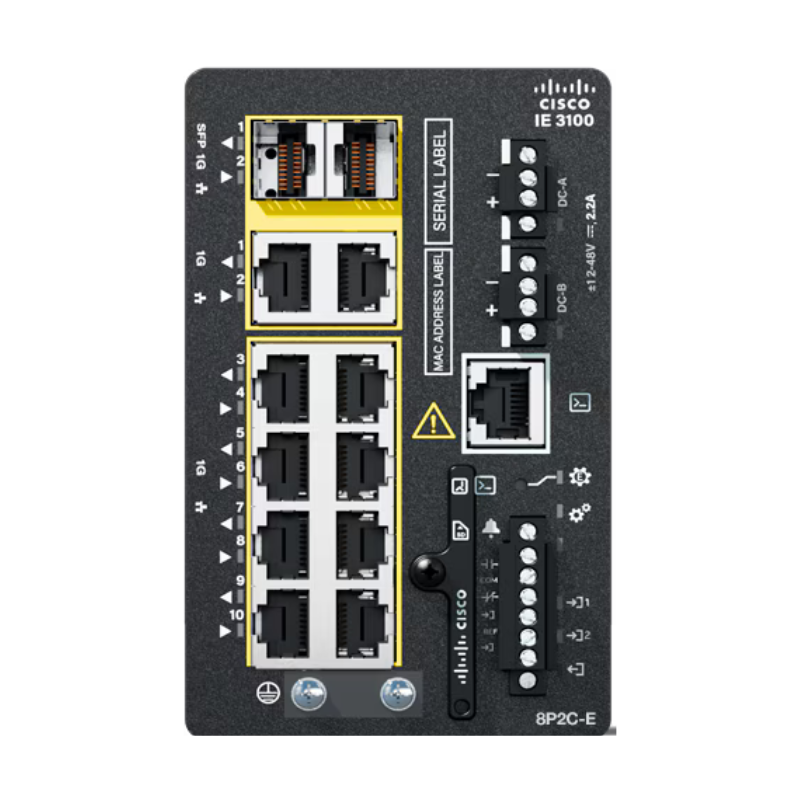 IE-3100-8P2C Catalyst IE3100 Rugged Series, 8 GE downlink ports with PoE/PoE+, and 2 GE dual-media uplink ports