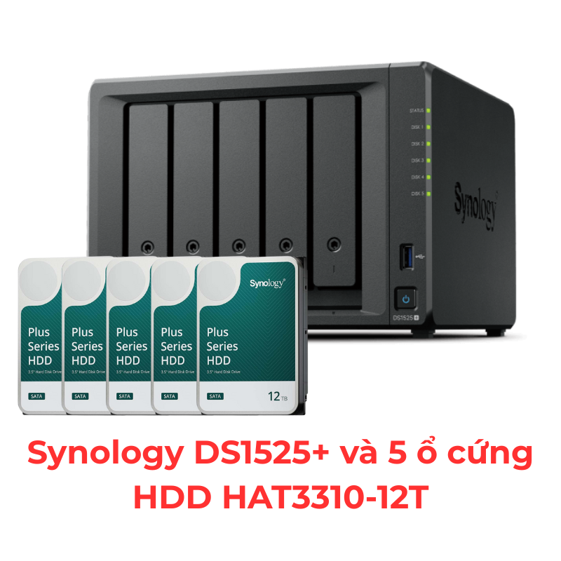 Combo Synology DS1525+ + 5 x HAT3310-12T là lựa chọn lý tưởng cho doanh nghiệp cần hệ thống lưu trữ dữ liệu lớn, an toàn và linh hoạt.