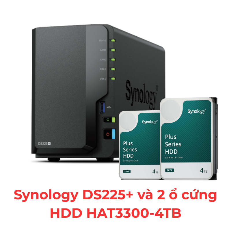 Combo Synology DS225+ + 2 x HAT3300-4T – Giải pháp lưu trữ tập trung, bảo mật, linh hoạt cho văn phòng và doanh nghiệp nhỏ.